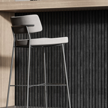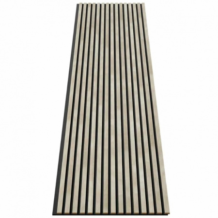 Изготовлен из экологичного волокна, устойчив к влаге, долговечен, воздухопроницаем, преломляет и подавляет звуковые волны. Декор панелей – рейки из мебельного МДФ, облицованные экошпоном: устойчивы к деформации, создают визуальный и тактильный эффект комфорта. Аналог деревянной рейки для стен в интерьере.