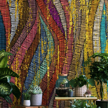 Словно растрескавшаяся под палящим солнцем поверхность земли, плавные изгибы движущихся песчаных дюн, выполненных с добавлением металлического сияния и рельефа, способны украсить любую комнату в современном стиле. Теплые, земляные тона придадут дому самобытность, ведь дизайны, вызывающие ассоциации с природой, всегда привлекают взгляд и успокаивают.